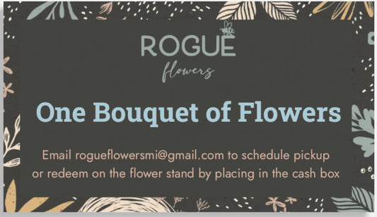 Purchase gift cards, redeemable for single bouquets on the stand or by special order. The more gift cards you purchase, the more you save! Great for birthdays, anniversary gifts, or just to brighten someone's day.