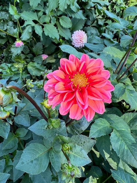 Compact plant bloom abundantly with mauve, coral, salmon, and blush tones. Requires hard cutting to produce long stems. The center does tend to blow open late in the season