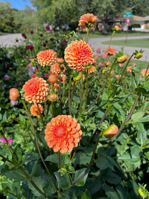 One of my most prolific dahlias! Perfect orange flowers with long, strong stems. Will need staking due to amount of blooms!